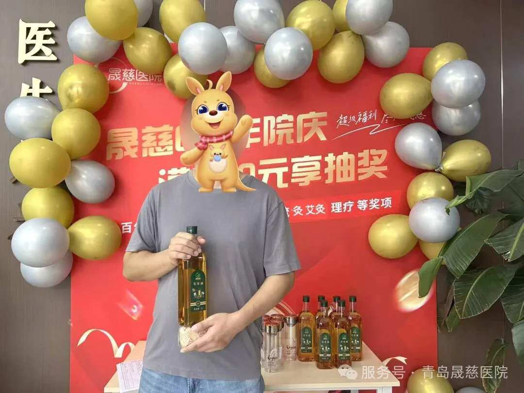 即日起至12月 30 日, “消费满300元即可抽奖”,如果您在青岛晟慈医院单次消费满300元,包含但不限于:体检、诊疗、中医理疗等,都可参与抽奖活动,百分百中奖。奖品包含:花生油、双层水杯、推拿、拔罐、针灸、艾灸、刮痧等。